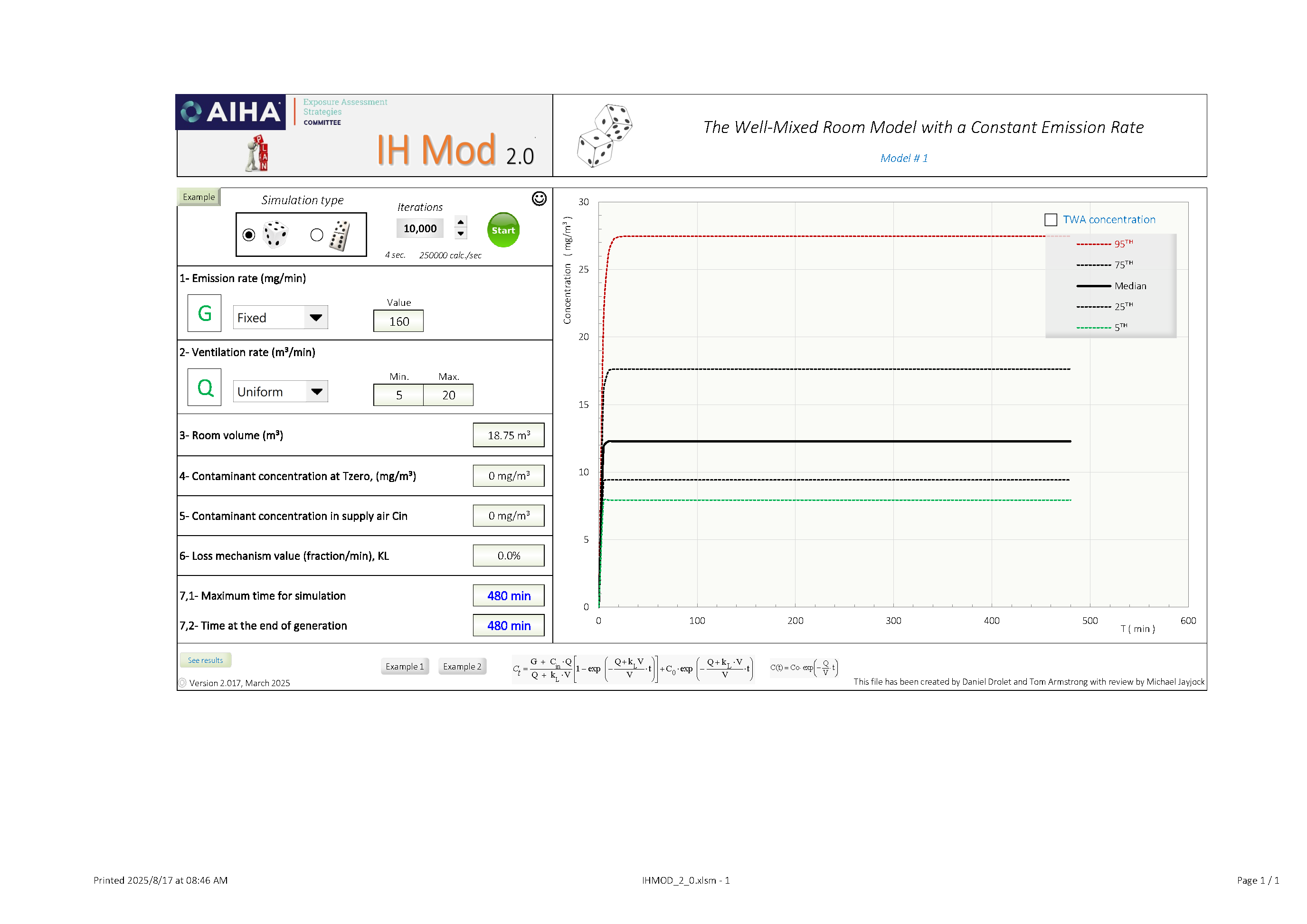 - 評估環境: 定義一個體積 (V) 為 18.75 m3,通風量 (Q) 為 20 m3/min 的虛擬工作空間。