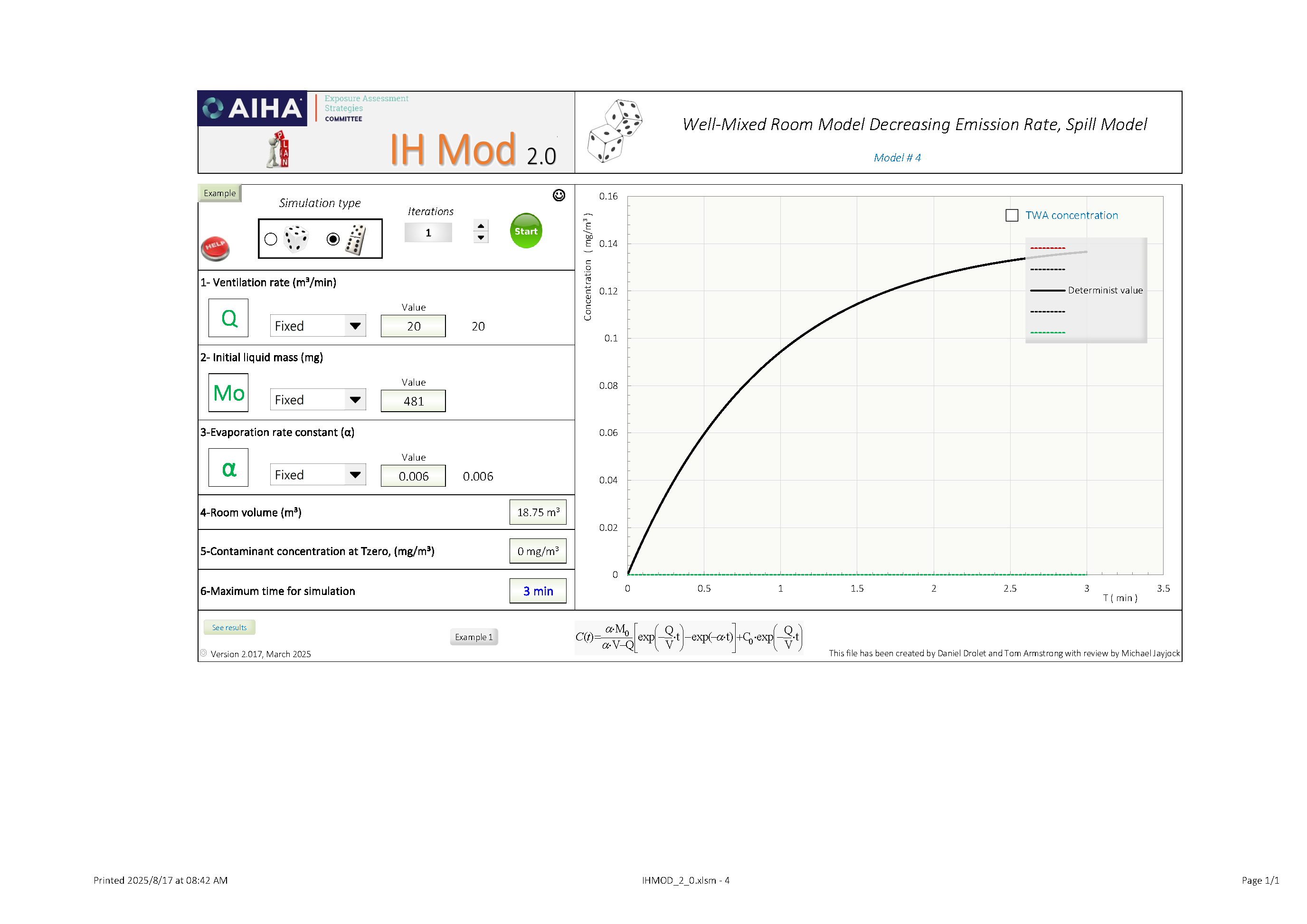 Well-Mixed Room Model Decreasing Emission Rate, Spill Model